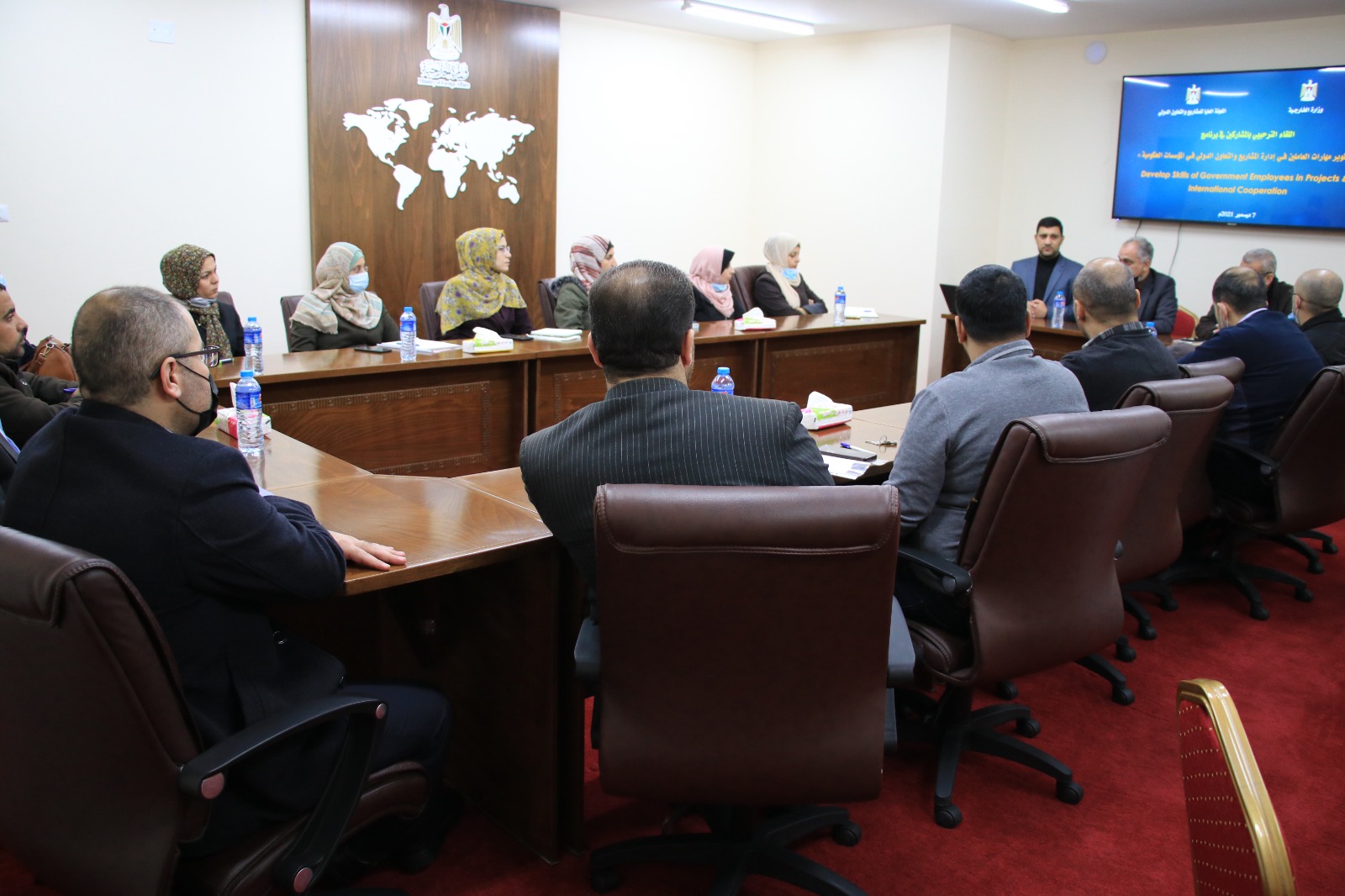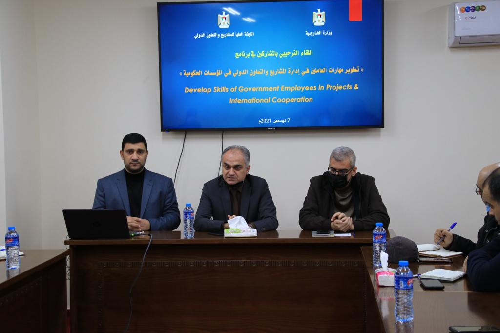 عقدت وزارة الخارجية واللجنة العليا للمشاريع والتعاون الدولي اللقاء الترحيبي الخاص بالمشاركين في برنامج “تطوير مهارات العاملين فـي إدارة المشاريع والتعاون الدولي فـي المؤسسات الحكومية”، وذلك صباح يوم الثلاثاء الموافق 7/12/2021 في قاعة تدريب وزارة الخارجية بمدينة غزة.